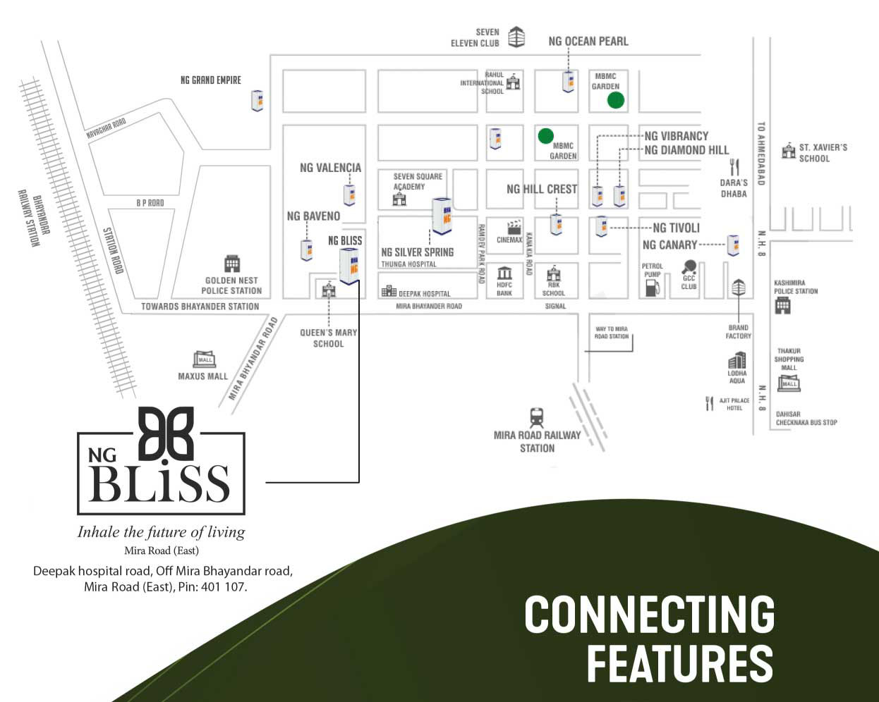 NG BLISS is well-connected to other parts of Mumbai by rail and road networks. A major advantage of the project is its proximity to the Railway